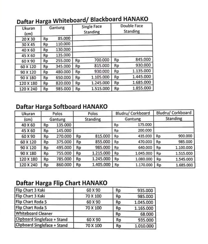 Rp 255.000Daftar Harga Whiteboard, Softboard, Blackboard, & Flip Chart October 2025